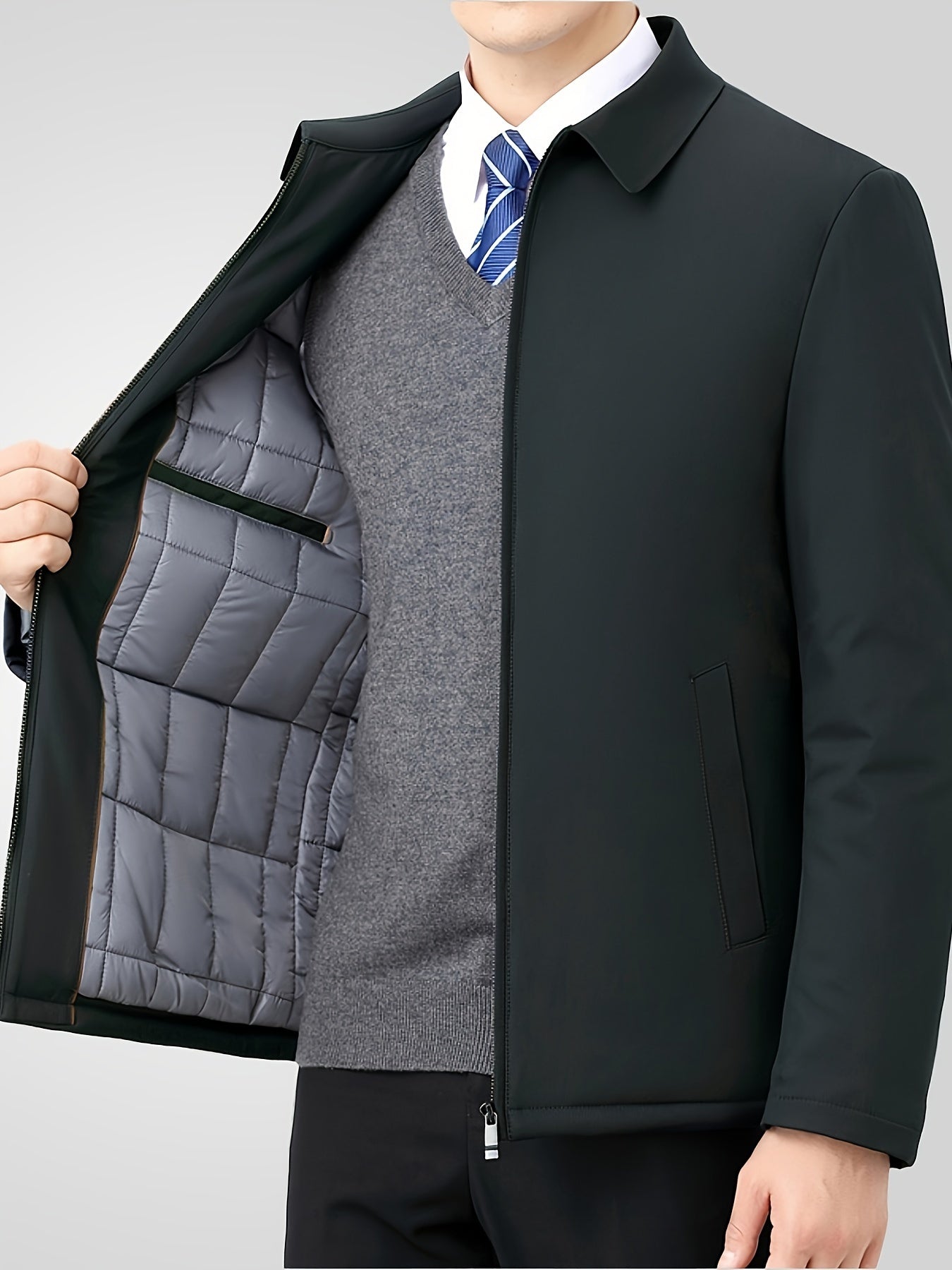 Mens Winter Solid Color ZipUp Warm Jacket